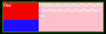 为了让One元素和Two元素左右并排,我们可以将Two元素变成BFC,这是利用了BFC的区域不会与float元素重叠的特点